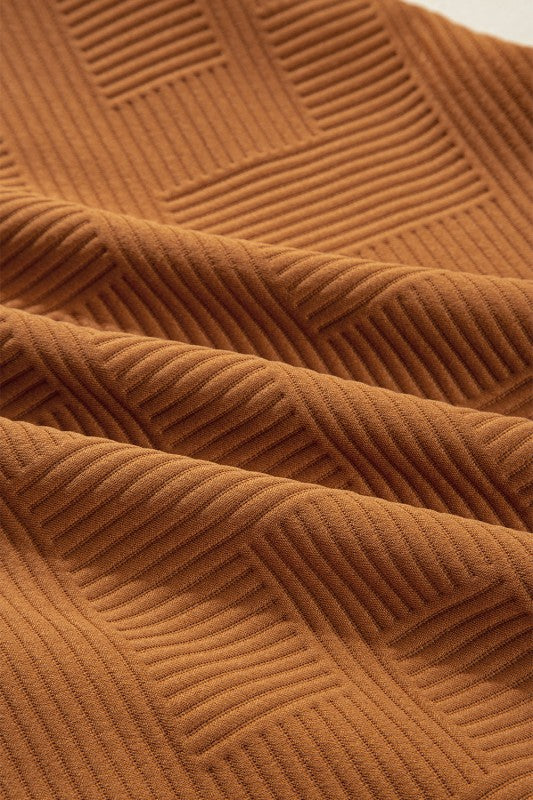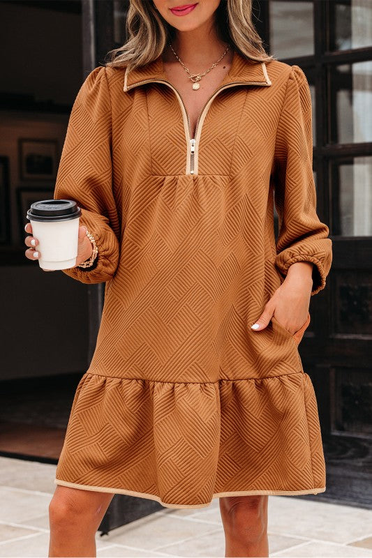 Textured Quarter Zip Collar 3/4 Sleeve Mini Dress